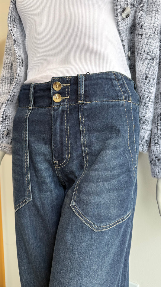 WIDE LEG PULL ON DK WASH