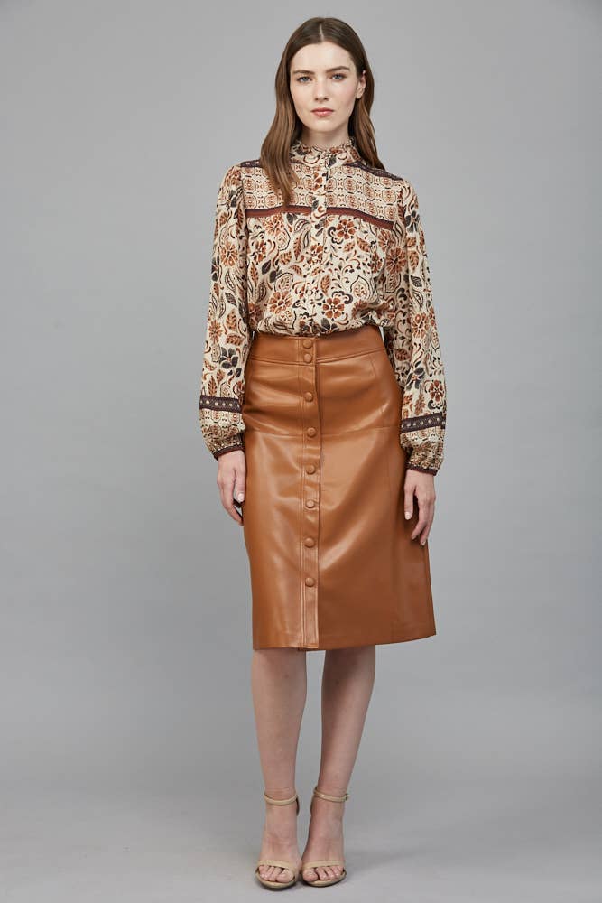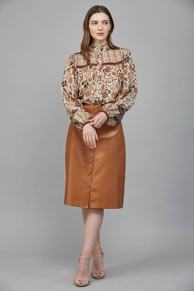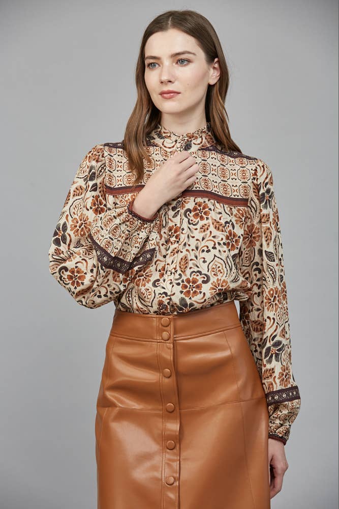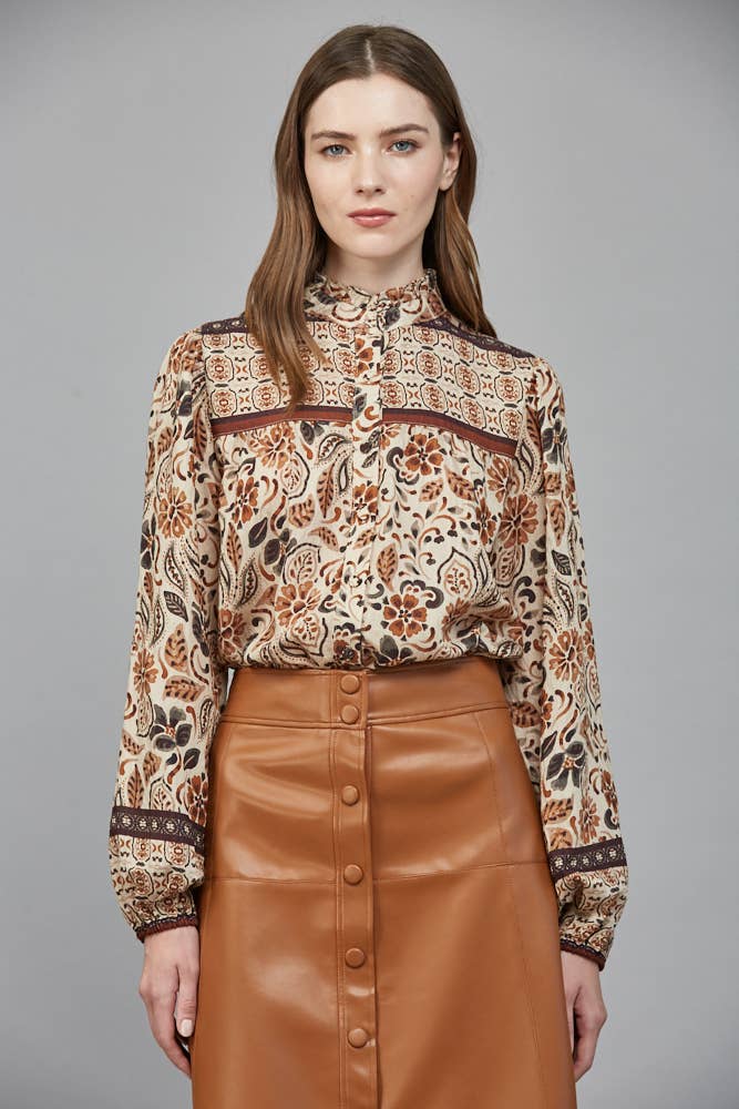 FRONT BUTTON CLOSURE RUFFLED NECK BLOUSE
