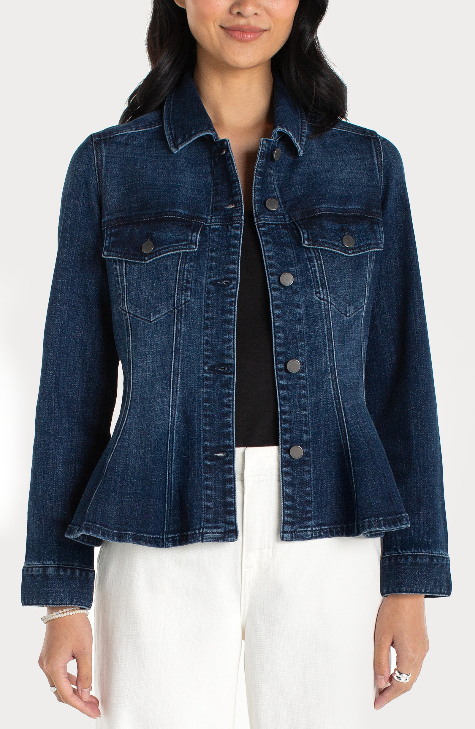 Refresh your layering lineup with this soft, stretchy denim jacket featuring seam details and a nipped-in waist that highlight an hourglass figure.