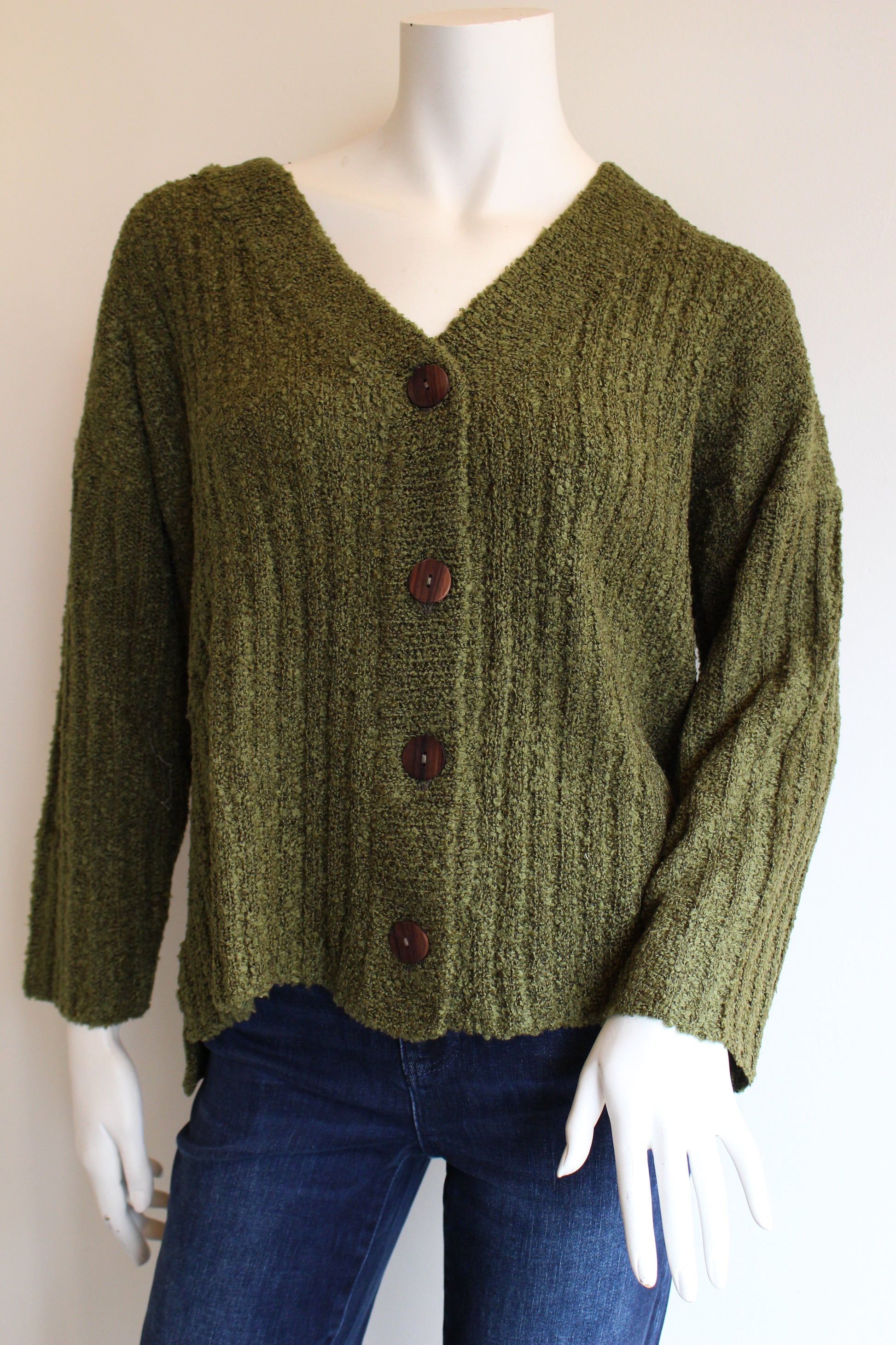 Island Tribe's famous boyfriend sweater is a luxurious chenille cardigan with beautiful coconut shell buttons. Wrap yourself in comfort and style with this exclusive piece. Perfect for those cool evenings and chilly morning